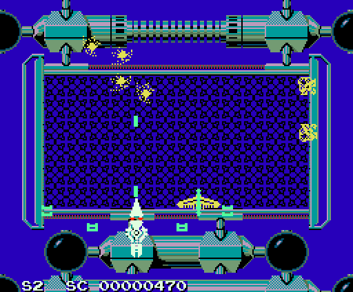 외계인 머리와 알파벳 E 모양으로 번갈아가면서 나타나는 연두색 아이템을 먹으면 기체가 한 단계 진화합니다.
