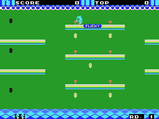 제목: 플리키 (フリッキー / Flicky) 날짜: Posted on 2025-10-13 키 조작법 ←→ 이동 Space 게임 시작, 점프, 물건 투척 도움말 방해꾼 고양이를 피해 아기 병아리들을 데리고 출구로 들어가는 것이 목표입니다. 고양이는 물건을 투척해서 잠시 퇴치할 수 있습니다.