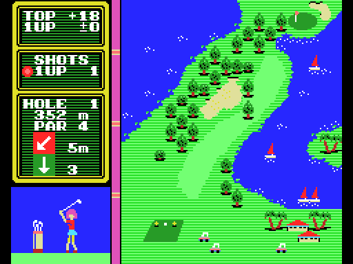 제목: 홀인원 프로페셔널 (ホール・イン・ワンプロフェッショナル / Hole in One Professional) 날짜: Posted on 2025-10-18 / 2025-10-18 키 조작법 ←→ 방향 선택 ↑↓ 클럽 선택 Space 게임 시작, 결정, 스윙