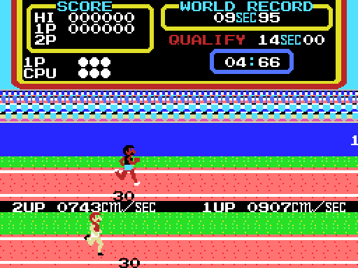 제목: 하이퍼 올림픽 1 (ハイパーオリンピック1 / Hyper Olympic 1) 날짜: Posted on 2025-10-06 / 2025-10-07 키 조작법 ↑↓ 1P/2P 선택 → 달리기 (연타 필수) Space 게임 시작, 점프, 던지기 도움말 종목은 100m 달리기, 멀리뛰기, 투포환, 400m 달리기 순으로 진행됩니다.