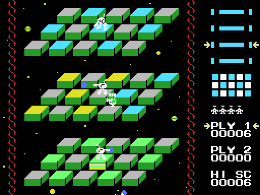 15개의 발판으로 이루어진 4개 층의 발판을 밟아 오른쪽에 보이는 색 배열대로 칠하는 것이 목표입니다.