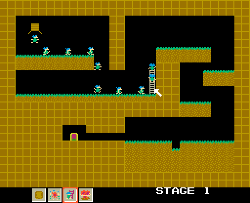 석화는 해당 위치의 레밍을 돌로 만드는 것이고, 자폭은 레밍을 해당 위치에서 자폭시켜 길을 뚫는 것, 사다리는 레밍이 올라갈 수 있도록 수직으로 사다리를 놓는 것입니다.