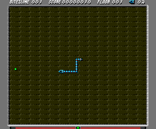 슬라임을 먹으면 먹을수록 몸이 길어지며, 자신의 몸이나 벽, 장애물과 충돌하면 미스 처리되어 라이프를 잃습니다.
