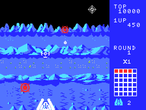 멀리서부터 다가오는 흰색 적 기체를 파괴하면 오른쪽의 네모칸이 하나씩 붉은색으로 채워지며, 다 채워지면 라운드 클리어.