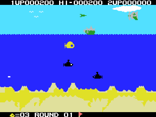 제목: 옐로우 서브마린, 노란 잠수함 (イエローサブマリン / Yellow Submarine) 날짜: Posted on 2025-10-13 키 조작법 12 게임 시작 (1P/2P) ↑↓←→ 이동 Space 발사 도움말 플레이어 캐릭터의 미사일은 위로 솟았다가 아래로 포물선을 그리며 낙하합니다.